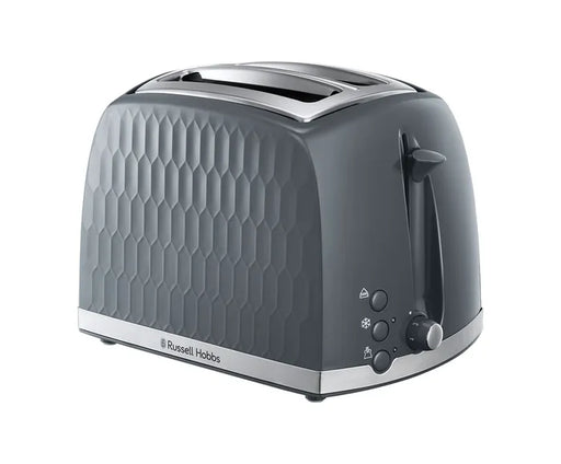 RUSSELL HOBBSProduct Description Keep your kitchen on-trend with the Honeycomb 2 Slice Toaster in a Premium Grey with a Textured Design. Letting you give your k...