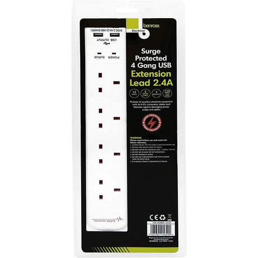 Original Price €19.99Original Price €19.99 - Original Price €19.99Original Price €19.99Current Price €16.99€16.99 - €16.99Current Price €16.99Benross 4 Way 2M 13A Surge Protected USB Extension Lead - White | 456290