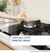 Our gas hobs come with black temepered glass surface, which adds a layer of durability and strength, so you don't have to worry when placing heavy pans on the hob. While also having a sleek look for your kitchen.